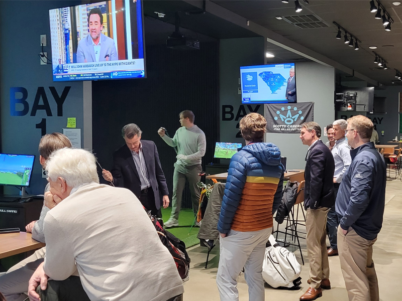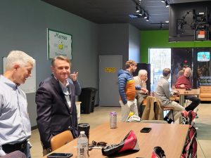After the office gathering, the guys headed over to The Back Nine. The Back Nine is a perfect venue for the occasion, offering high-quality simulated golf. It was great to see Dale in his element, enjoying a few rounds and some friendly competition with his colleagues. It wasn’t just about the game; it was about camaraderie and making a few final office memories outside of the office.